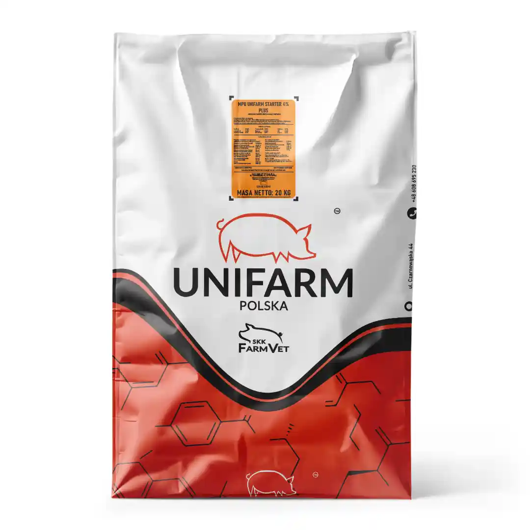 MPU Starter 4% to mieszanka uzupełniająca dla prosiąt po odsadzeniu. Kompleks enzymów (ksylanaza, β-glukanaza, amylaza, proteaza, fitaza) wspiera trawienie i pobranie; zbilansowany profil aminokwasowy stabilizuje wyniki. W cenie: badanie zbóż i recepturowanie.