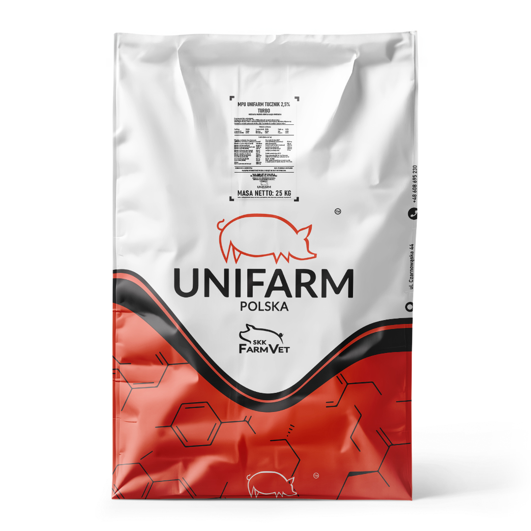 MPU Tucznik Turbo 2,5% to mieszanka paszowa uzupełniająca (finisher) dla tuczników od ok. 80 kg m.c. do końca tuczu. Zbilansowane witaminy i minerały oraz dbałość o zbilansowany profil aminokwasowy wspierają wysoką efektywność żywienia. Innowacyjne enzymy poprawiają strawność i efektywną energię paszy, co pozwala ograniczać udział drogich nośników energii (np. oleju sojowego), sprzyjając niższemu FCR (ok. 2,6–2,8) i krótszemu cyklowi tuczu. Analiza zbóż i receptura „pod wyniki” w cenie premiksu. Dawkowanie: 25 kg/1000 kg (2,5%).